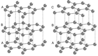 Fig. 1. Atomic structure of AB- and ABC-stacked fewlayer graphene.