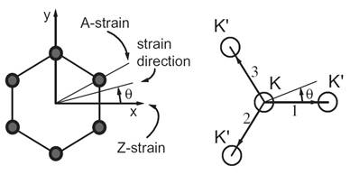 angle of the strain direction relative to the zigzag of carbon bonds (Z