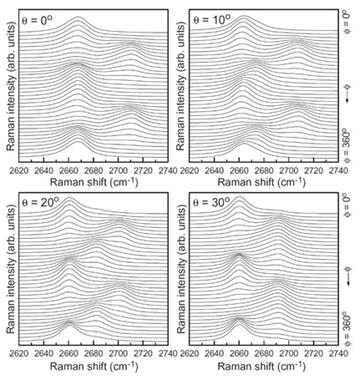 and B = 51.0 cm-1. These expressions allow deriving the shift rates Figure 4 shows the calculated polarization dependence of the intensity [6]. It can be shown that the intensity of the 2D band of unstrained graphene is polarization-dependent: